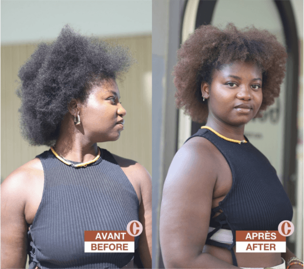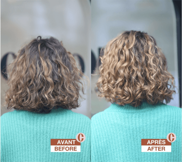 - un effet très tendance, notamment sur les cheveux frisés et crépus.